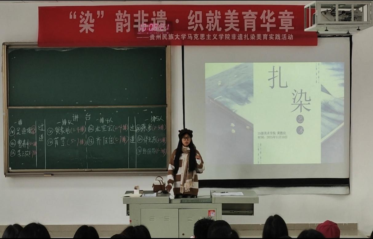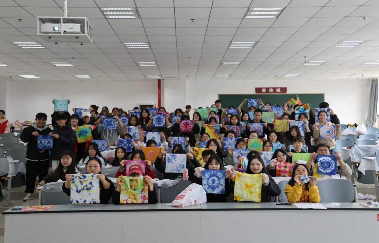 为让学生感受传统工艺美学,丰富校园文化生活,2025年11月10日,露点直播 于2号教学楼309教室开展“染”韵非遗·织就美育华章——露点直播 非遗扎染美育实践活动。本次活动参与人员为露点直播 全体学生。