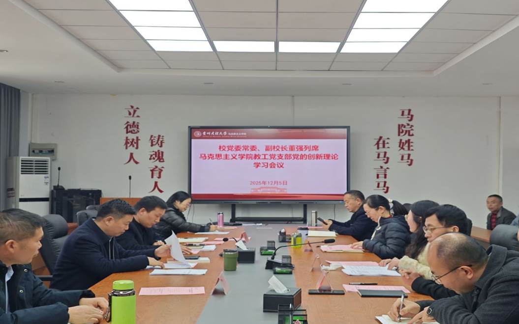 会上,校党委常委、副校长董强列席学院教工党支部党的创新理论学习会议。党支部支委许文英、谢延洵分别领学习近平同志在党的二十届四中全会上的报告和重要讲话精神以及习近平总书记在贵州考察时的重要讲话精神。与会党员杨世伟、刘小文分别结合自身教学科研工作实际作了研讨交流。学院党委书记徐勤山作为联系指导教工党支部的党委班子成员,就支部进一步抓好党的创新理论学习作了现场指导。