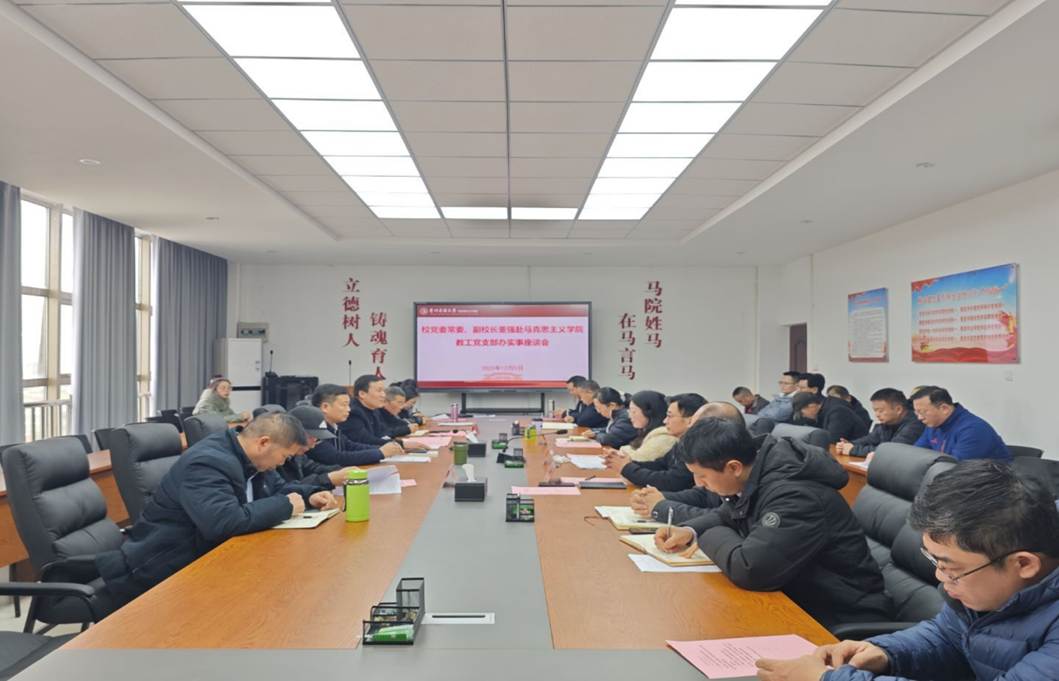 随后,校党委常委、副校长董强同与会人员开展座谈交流。董强同志围绕学院基层党组织建设、学科建设、硕士点申报等工作听取与会党员意见建议,并亲切关心大家的职业成长、生活、工作情况,对与会党员提出的疑惑和困难给予解答与帮助。董强同志鼓励全体党员积极做好教学、科研工作,完成教学科研成果的转化,努力推进学校硕博点申报,校党委和行政也将强化服务保障,为思政课教师安心从教、潜心治学创造良好条件。