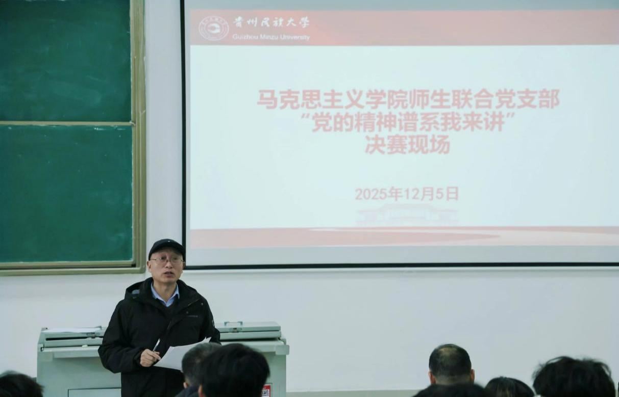 比赛尾声,学院正处级组织员付江红教授为比赛作点评和总结。他首先肯定了11位参赛选手对党的精神谱系内涵的深刻挖掘,宣讲情绪饱满热情,也指出了部分选手在内容逻辑、宣讲节奏上的不足;随后从宣讲PPT制作、肢体语言运用、内容选题方向等方面给出指导,并与现场学生共同探讨党的精神谱系的时代价值,鼓励同学们主动学习、积极参与,让红色精神在青年一代的传承中焕发新的生命力。
