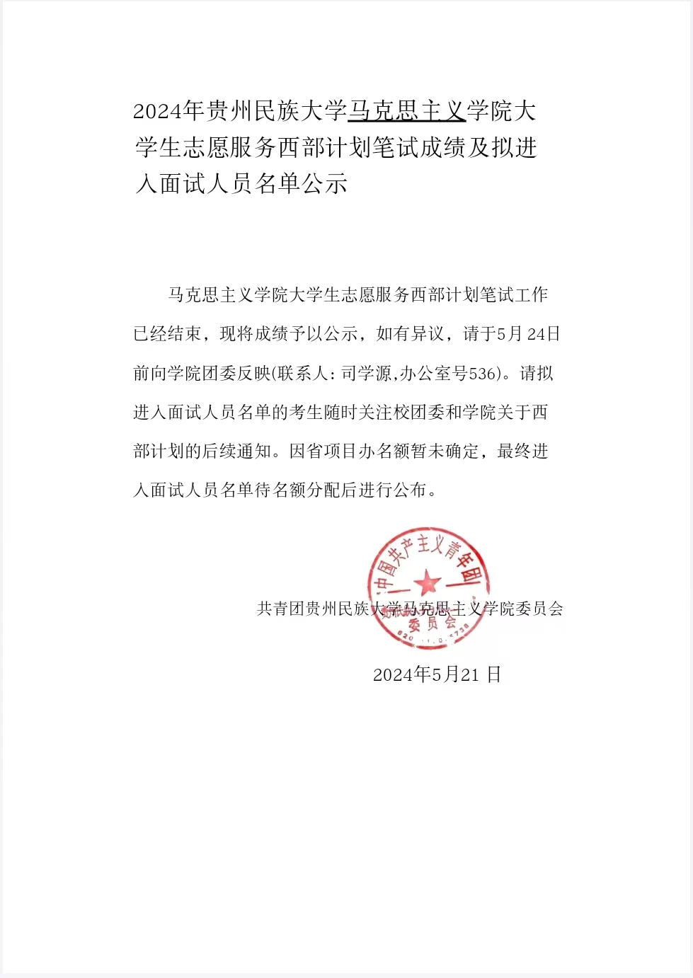 露点直播公告 |2024年露点直播 大学生志愿服务西部计划笔试成绩及拟进入面试人员名单公示