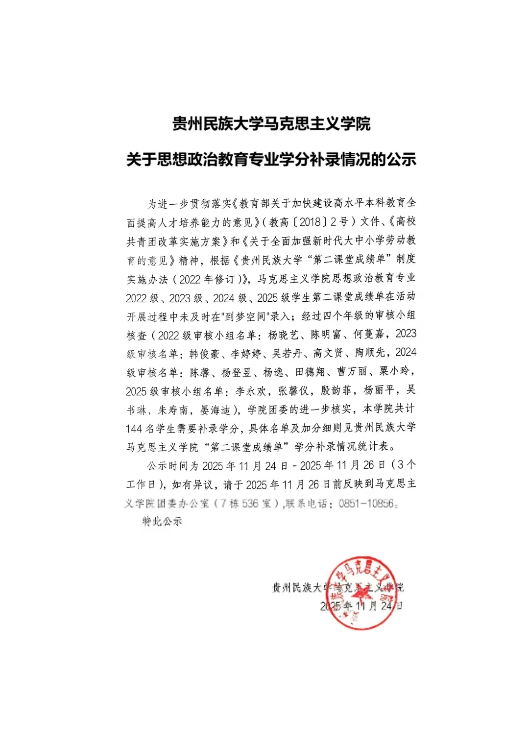 露点直播 关于思想政治教育专业学分补录情况的公示