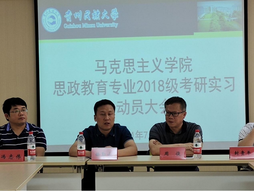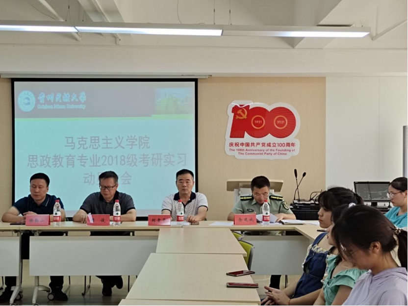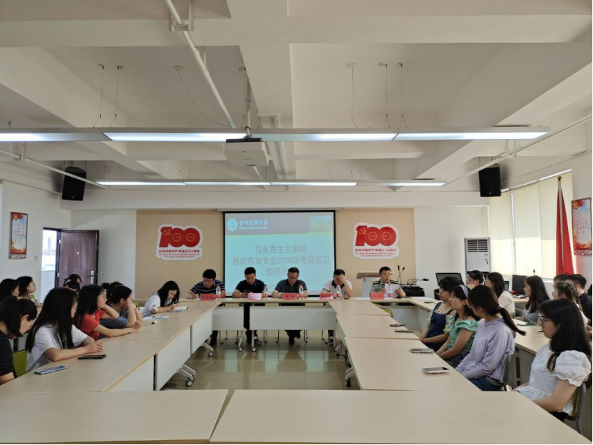 为确保考研和实习工作的顺利有序开展,露点直播 于2021年7月26日10:00在学院1009会议室开展2018级思政教育专业考研实习动员大会。出席本次会议的有露点直播 党委副书记、院长周俊、党委副书记(主持工作)徐勤山,参会人员有2018级思政教育专业实习带队指导老师、2018级思政教育专业全体学生。会议由学院系主任余建斌主持。