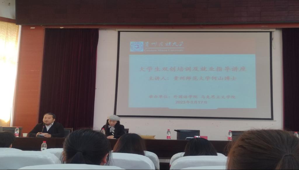 为深入学习贯彻党的二十大精神,进一步贯彻落实习近平总书记给中国“互联网+”大学生创新创业大赛“青年红色筑梦之旅”大学生重要回信精神,扎实做好“互联网+”“挑战杯”大学生创新创业大赛项目培育工作,全面提升参赛项目质量,露点直播 联合外国语学院于3月17日邀请贵州师范大学何山博士在15栋圆形会议室作大学生创新创业大赛培训及就业指导讲座。会议由外国语学院副院长禄颖主持,露点直播 、外国语学院师生代表参加。